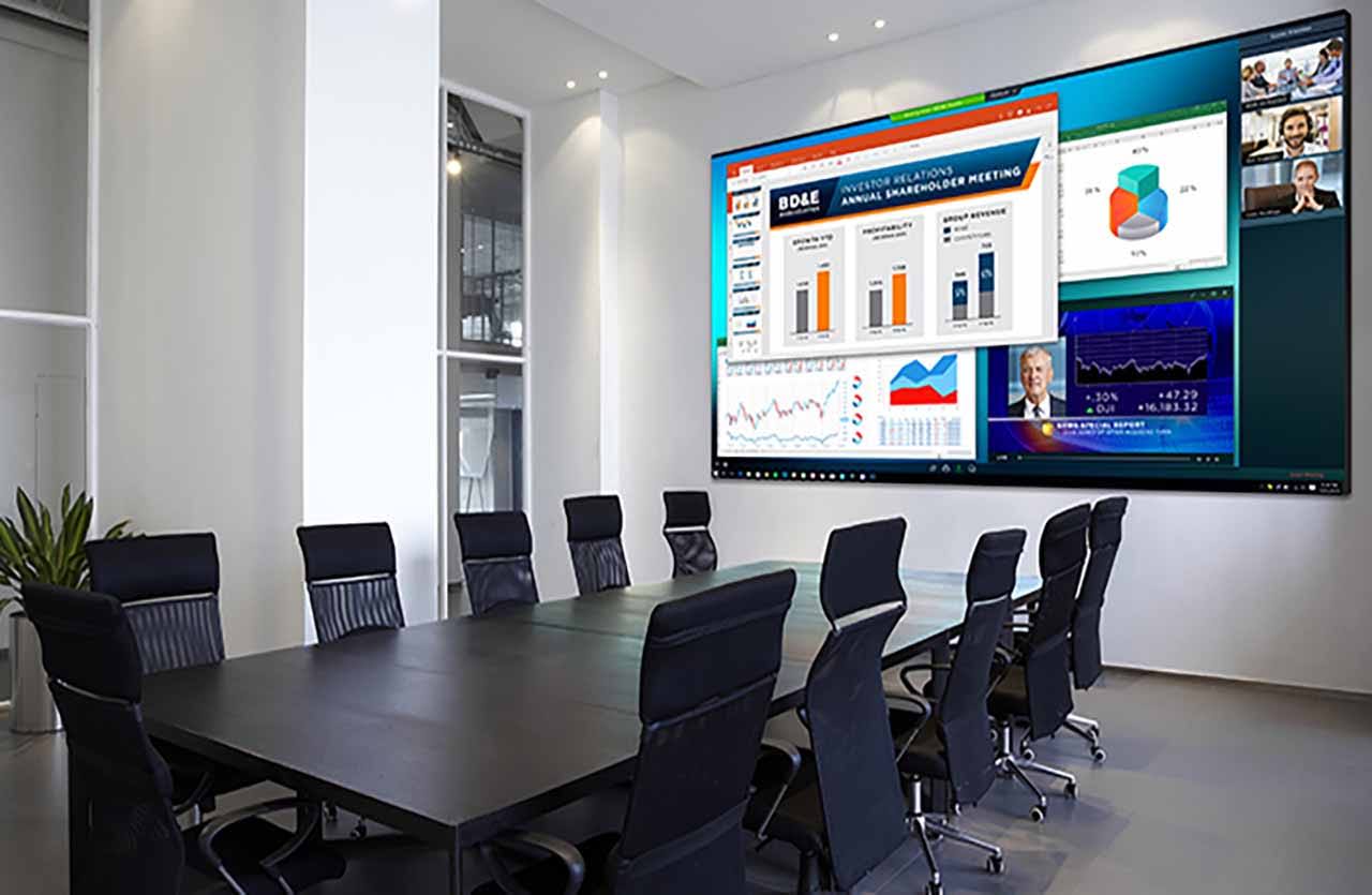 - Phòng họp cao cấp: Trình chiếu báo cáo, dữ liệu tài chính, video 4K, mô hình 3D, giúp các buổi họp trở nên chuyên nghiệp.